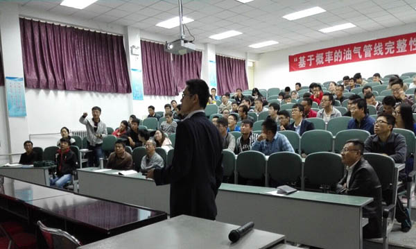 师生做了以《基于概率的油气管线完整性管理》为题的学术报告,学术报告立足于发达国家已有社会基础设施的生命周期维护,使用多种理论方法对油气管线的维护和管理进行了预测和验证,也为天美传媒