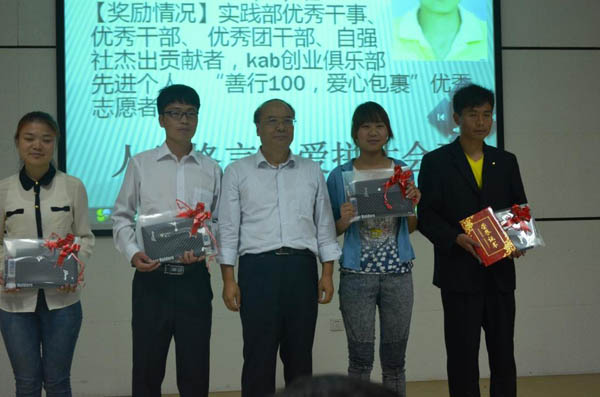 随后,全体师生观看了受表彰集体和个人自拍的视频,与会领导分别给“文艺之星”陈辉、“体育之星”杨立明、“学工之星”王小东、“自强之星”马学燕、“创业之星”谢云峰、“尚德之星”杨洋、 “实践之星”杨晋团队、“公益之星”万珍团队、“科研之星”王文孟和“学业之星”张丽娜、田晓敏、李尚蔚等十八位同学颁奖,受表彰的集体和个人分别发表了获奖感言。