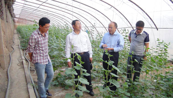 9月14日,王超院士在田军仓院长的陪同下,专门前往宁夏贺兰县欣荣村微咸水资源安全利用技术试验点、平吉堡旱作水稻膜下滴灌技术试验点以及内蒙古左旗阿拉善绿洲农业区玉米、油菜和谷子膜下滴灌试验点指导工作。在各试验点,王超院士仔细听取试验设计思路和方案,现场查看试验效果,并与试验员人亲切交流,对试验工作提出了很好意见和建议。王超院士的现场指导,开阔了科研人员的视野,促进了天美传媒