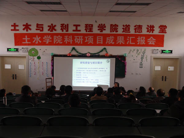 杨明成、杨建森和孟云芳三位教授分别就自己承担的国家自然科学基金项目进行汇报交流,其中杨明成教授介绍了《边坡稳定性分析的极限平衡有限元法及其应用研究》的主要成果,杨建森教授介绍了《宁夏盐碱地带混凝土耐久性劣化模型与机理研究》的主要成果,孟云芳教授介绍了《干旱寒冷地区用复合生态纤维抗冻裂防渗节水应用基础研究》的主要成果。三位教授的汇报内容丰富,通过大量的图片、数据和图表等图文并茂的展示了各自的科研成果,取得了良好的效果。然后,与会教师就感兴趣的问题与三位汇报人进行了热烈的讨论,并就科研项目申请、立项以及完成过程中的经验进行了广泛的交流。
