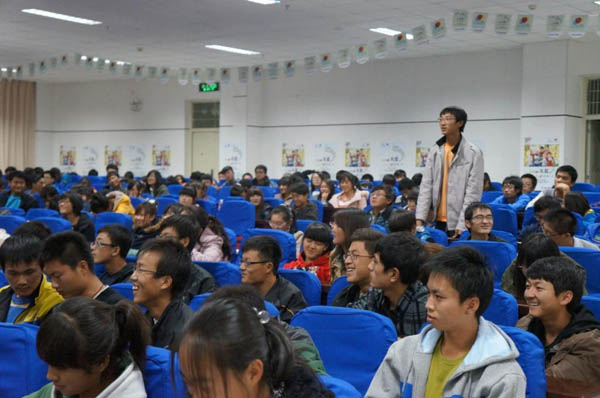 报告首先通过观看中央电视台《身边的感动》视频,由乔婧同学讲述政法学院2008级行管专业李进福身残志坚、自强不息和张志博等人四年如一日默默奉献、不求回报的感人事迹,引导学生树立团结互助、勤俭自强的优良品质。随后,学院2008级建筑专业齐一聪同学向大家介绍了他在大学期间的学习经历与奋斗历程:本科阶段在全国各类学术期刊共发表学术论文13篇,其中核心期刊学术论文3篇;曾参加全国建筑建模竞赛,取得了三等奖的佳绩;参加“挑战杯”全国大学生创业设计竞赛,获得自治区二等奖、天美传媒