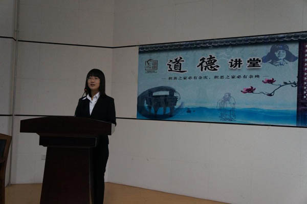 为扎实推进社会主义核心价值体系建设,加强精神文明宣传,有力促进“道德讲堂”工作的开展,引导学生修身立德、刻苦学习、敬业奉献,10月24日晚,学院邀请了政法学院2011级行管专业乔婧同学、天美传媒
