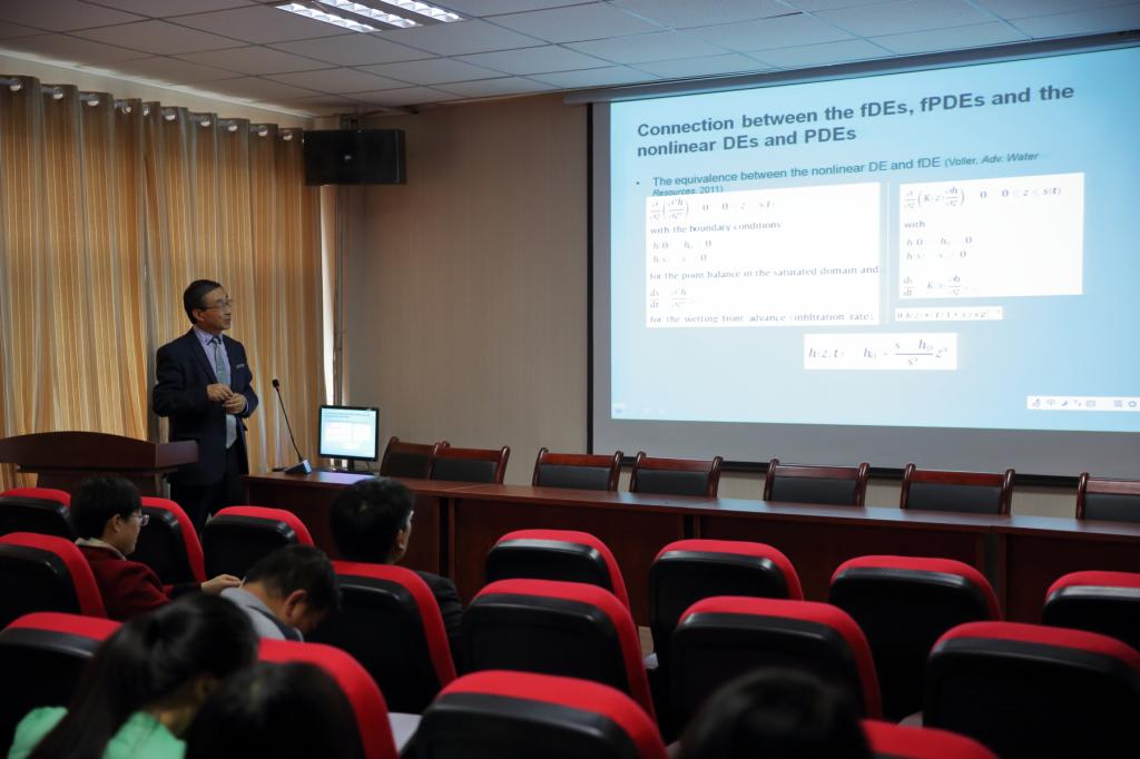 水利系教师和水利相关专业研究生30多人参加了报告会。苏教授的报告首先从分数阶微分方程入手,深入浅出的介绍了分数阶微分方程的应用,重点介绍了分数阶微分方程在土壤水和地下水运动的扩散-波动方程中的应用。之后介绍了他在澳大利亚和新西兰做的其他方面研究成果,包括灌溉排水优化、加氧灌溉、降水地下水补给、地下水溶质运移等11个方面的内容。他的报告内容丰富,将深奥的分数阶微分方程讲得通俗易懂。他还介绍了澳大利亚的本科生和研究生的培养体制和管理,并热情洋溢地解答了天美传媒