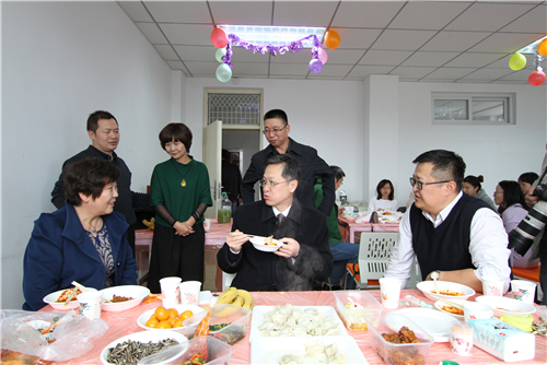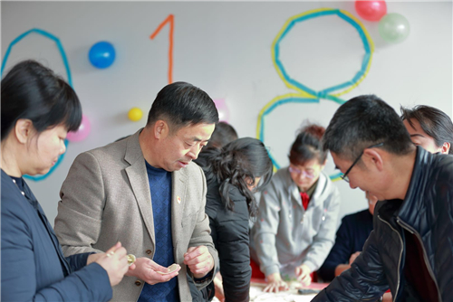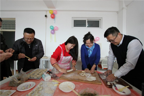 中午11点,学院党政领导来到各系活动室,与各系教职工一起准备食材、布置场地,准备包饺子活动。之后,各系教职工纷纷到齐,踊跃参加新年活动。每位在场教职工各有分工,擀面皮、包饺子的迅速有序展开,大家迫不及待地挽起了衣袖大干起来。窗外寒意袭人,屋内暖意融融。一会儿功夫,在大家齐心协力下,饺子很快都包出来了,在大家欢喜声中,热气腾腾的饺子已经出锅,教职工们兴高采烈端饺子、拌调料,纷纷露出笑容并与自己的作品合影留念,高兴地品尝自己的劳动成果。