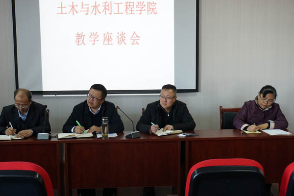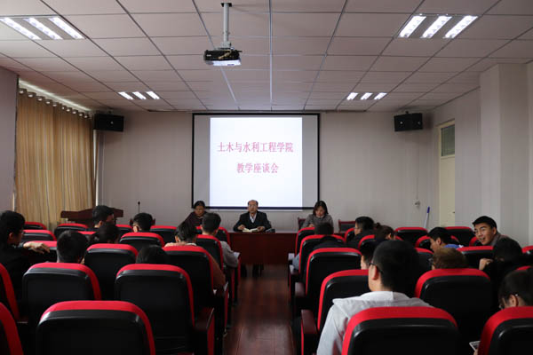 高、低年级教学座谈会。学院党委书记高继明、院长毛明杰、主管教学副院长刘海峰、学校教学督导尹宁、教学办主任白俊英以及各班学生代表参加此次座谈会。