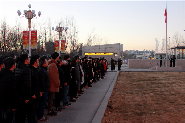 在激昂雄壮的国歌声,鲜艳的五星红旗在贺兰山校区德勤楼前冉冉升起,迎风飘扬,全体师生肃立注目、奏唱国歌。