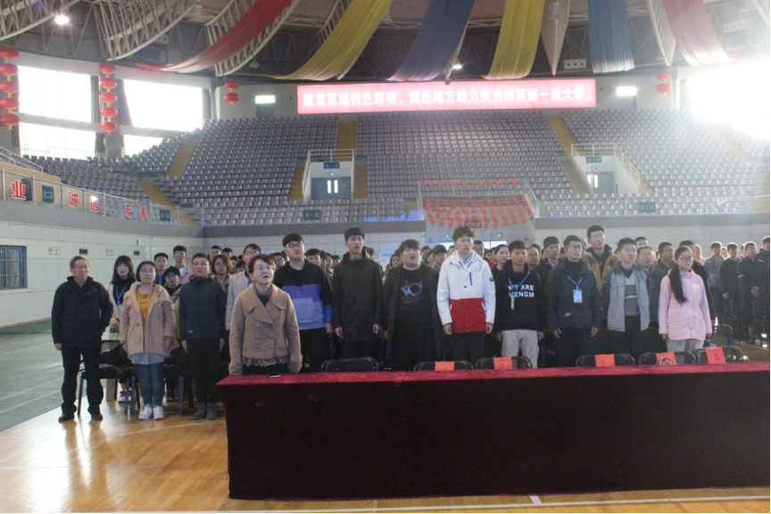 副校长李建设以及主办单位、各学校、承办单位、协办单位及冠名单位领导在主席台上就坐。出席开幕式的还有裁判专家、竞赛组委会成员、各参赛队领队教师、竞赛选手、志愿者工作人员以及竞赛观众350余人。
