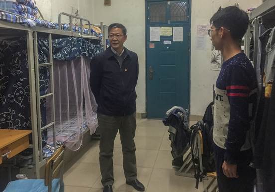 随后,周书记查看了辅导员值班情况,走访了学生宿舍,细致入微地查看着关系学生生活的每一个细节,和学生们展开谈心谈话,了解学生们的学习生活状态。当晚,周书记还先后到贺兰山校区和文萃校区进行安全检查,深入教室、公寓和餐厅了解情况,并查看了各学院夜间值班情况。