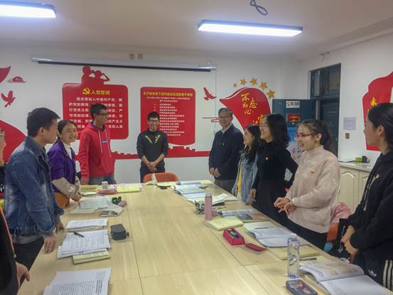 周书记首先来到了文萃校区15号公寓楼党员活动室,此时建规本科党支部全体在校15名党员正在党员活动室进行学习研讨,党员们看到周书记进来后,大家感到十分惊喜,纷纷起立鼓掌欢迎。看到党员们正在学习《习近平在全国高校思想政治工作会议上的讲话》,周书记问党员们学习之后有什么收获和体会,党员们争先恐后地向周书记汇报了自己的学习心得和感受。在详细了解党支部“不忘初心、牢记使命”主题教育开展情况之后,周书记仔细认真地翻看了必读书目、学习资料和学习笔记,鼓励党员们要认真学习习近平新时代中国特色社会主义思想,同时也要刻苦学习专业文化知识,扎扎实实推进主题教育,确保主题教育与专业学习两不误、两促进。
