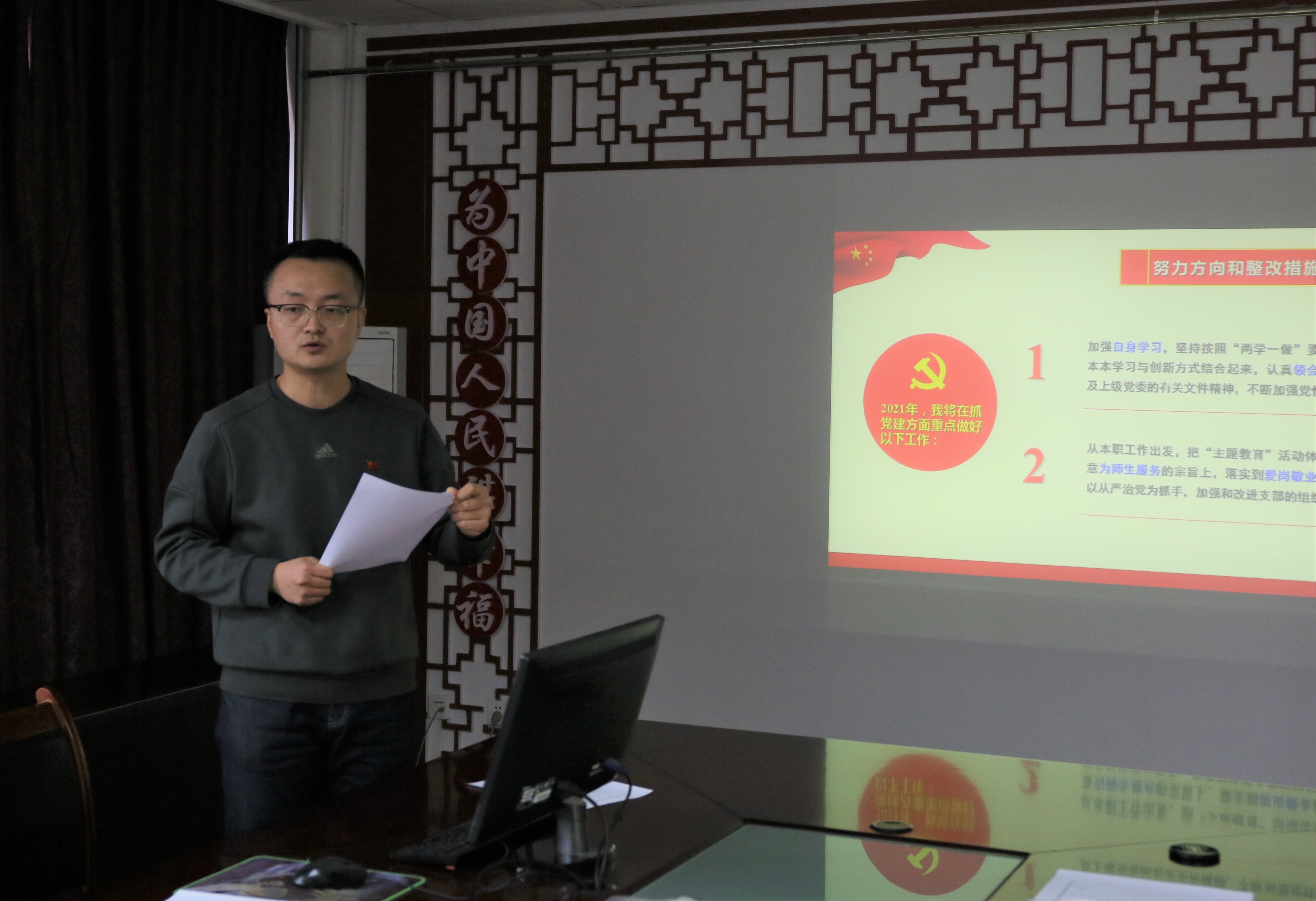 在知行楼415会议室召开了2021年度基层党建工作述职评议考核会。学院党委委员、各教工和学生党支部书记参加会议,院长毛明杰列席会议,学院党委副书记尹娟主持会议。