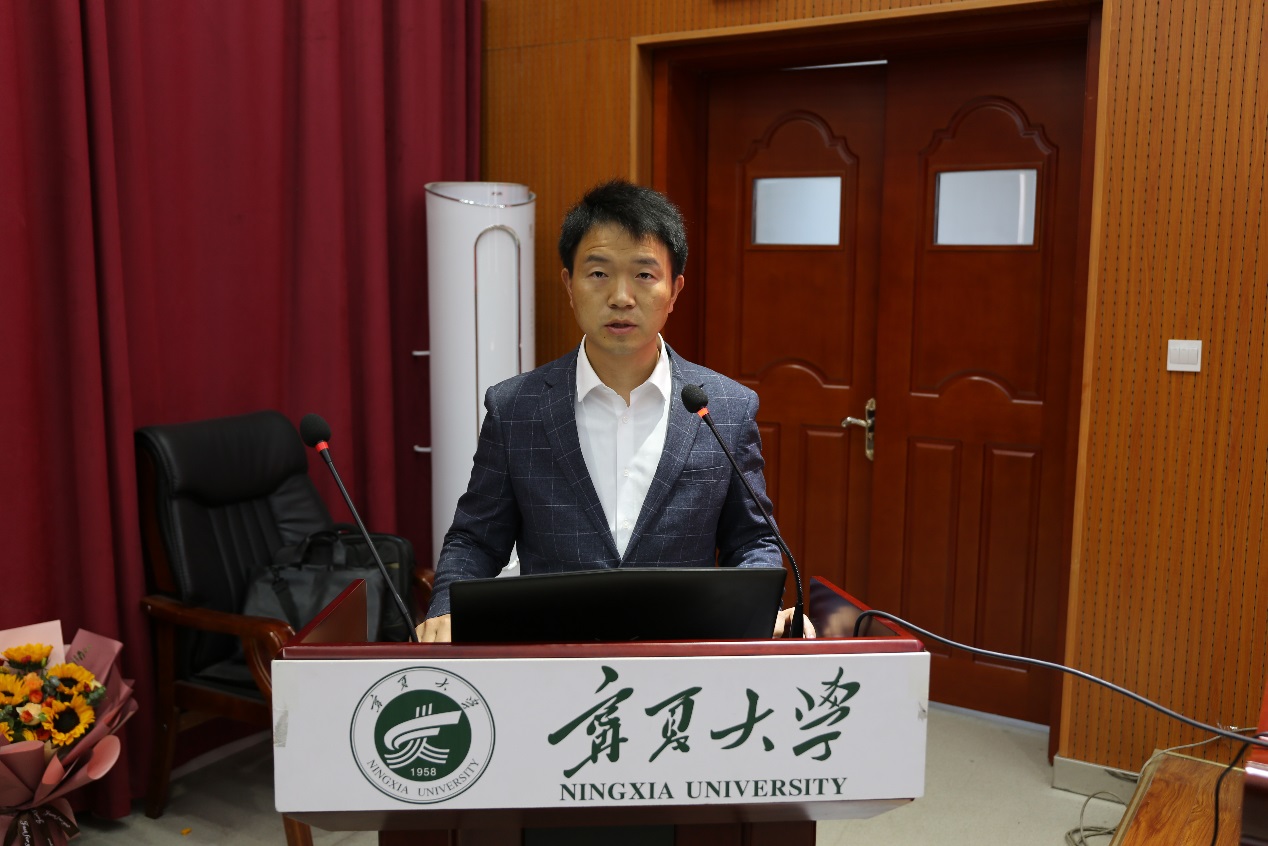 王斌教授作为导师代表发言,王斌教授表示为了使青年教师更好地成长,导师们将不遗余力地为其专业发展贡献力量,同时也向青年教师提出了殷切期望:要热爱职业,热爱学生,用真诚的态度,饱满的激情体验教学生活;要不断提升自我的专业素养和创新能力。王斌教授的发言真挚地表达了对青年教师的殷切嘱托。
