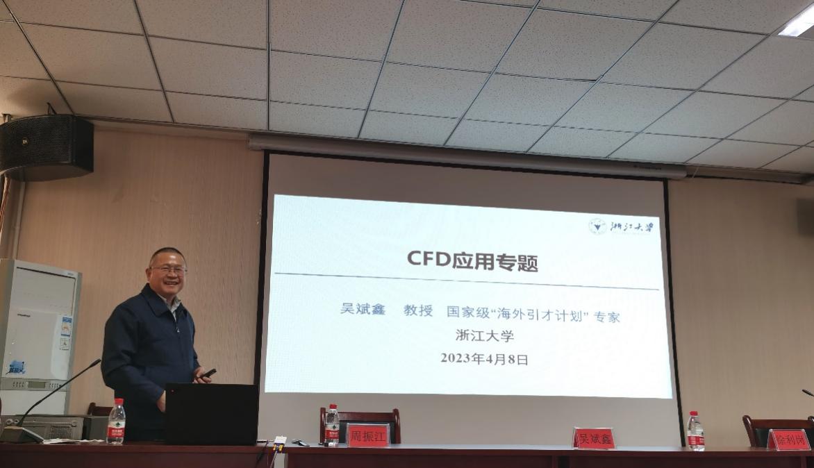 报告会上,吴斌鑫教授以“计算流体力学及其工程应用”为题,概述了数值模拟在流体力学、传热传质、燃烧及化学反应中的应用,并对CFD在生物质厌氧发酵、肥料在土壤中流动、泵前过滤器、农用无人机药液喷洒、鱼塘增氧机、畜禽舍和智能温室通风传热等方面的应用案例进行交流。