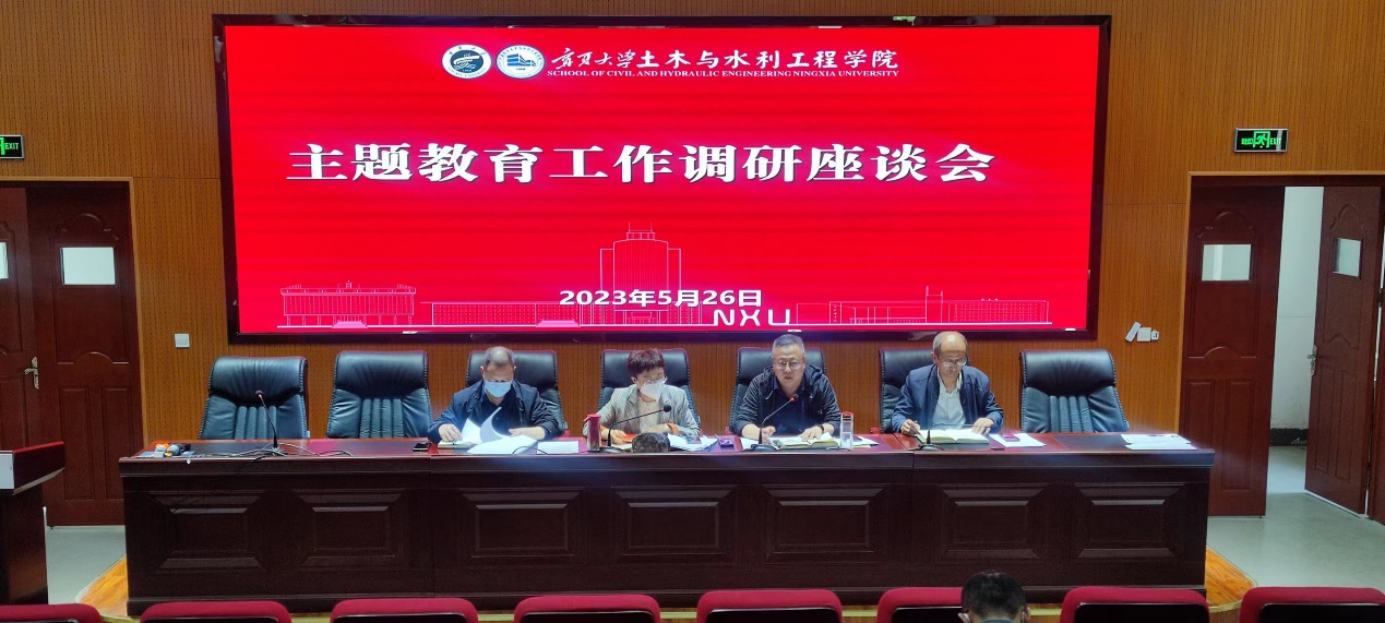 在知行楼阶三会议室召开主题教育座谈会。土水学院领导班子成员、各系主任、青年教师、教师代表参加座谈会。