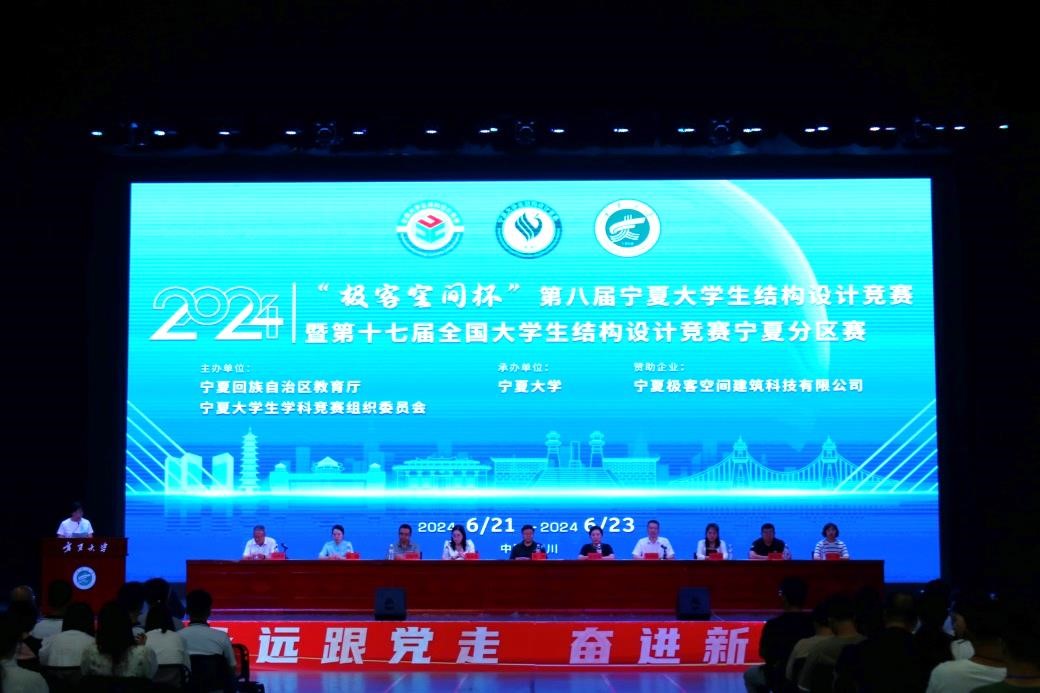 6�21日至23日,由宁夏回族自治区教育厅、宁夏大学生学科竞赛组织委员会主办,宁夏大学承办的“极客空间杯”第八届宁夏大学生结构设计竞赛暨第十七届全国大学生结构设计竞赛分区赛在我校大学生活动中心举办。宁夏大学党委常委、副校长黄河出席开幕式,宁夏建设职业技术学陀银川能源学陀北方民族大学、银川科技学院、宁夏理工学院,以及我校团委、创新创业学陀土木与水利工程学院相关负责人参加开幕式。开幕式由土木工程学院毛明杰院长主持�