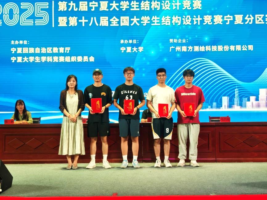 包超老师和建筑学院张强老师共同指导的郭忠达、王嘉钰、李何锐同学组成的参赛队脱颖而出,获得区赛第一名。他们将代表自治区高校参加将于10月15日至19日在绍兴文理学院举办的第十八届全国大学生结构设计竞赛。此外,本次竞赛共决出本科组一等奖2项,二等奖4项,三等奖6项,高职高专组一等奖1项。