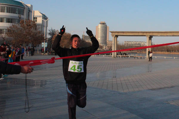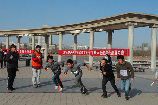 体育学院主办的“第十届全民健身体育文化节”系列活动之“冬季环金波湖长跑接力”的甲组比赛在天美传媒