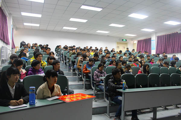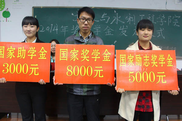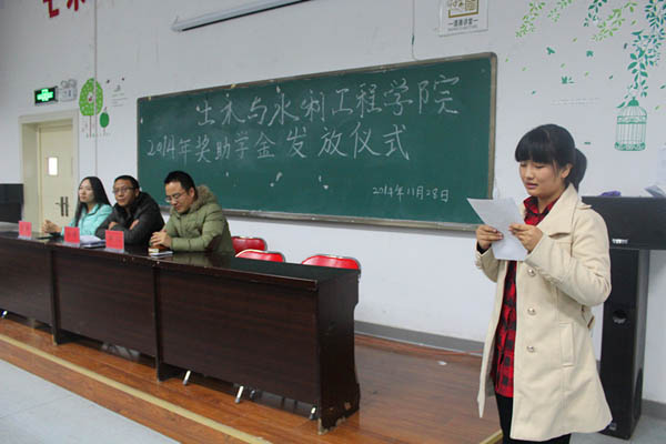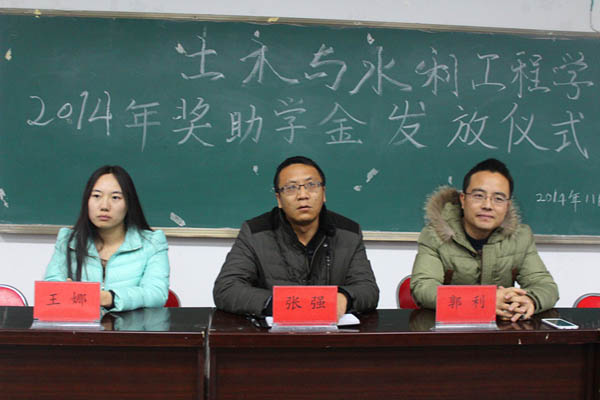 2014年度国家奖助学金发放仪式在工科楼第三阶梯教室举行。学院党委副书记张强老师,学办主任郭利老师,团委书记王娜老师,学院200余名受奖受助学生代表参加了此次发放仪式。