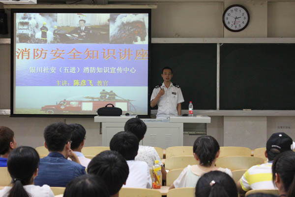 2015年9月2日下午14点30分,由银川社安(五进)消防知识宣传中心陈彦飞警官主讲的消防知识安全讲座在C区1教221教室成功举行。学院党委副书记张强老师出席并主持了本次讲座,2012级、2013级、2014级各班班长、团支部书记以及学习委员听取了本次讲座。