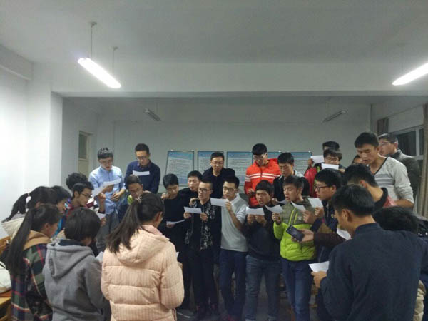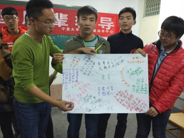 2015级学生各班自习教室里展开。参加本次活动的有土水学院2015级全体学生、学生会心理部成员以及心理健康教育中心朋辈辅导员。
