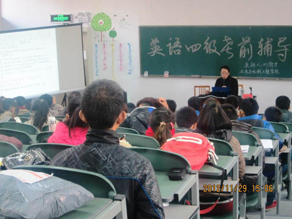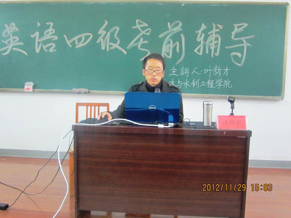 学生英语学习热情,帮助学生积极备战即将到来的全国大学英语四级考试,近日11级辅导员叶新才老师在工科楼第三阶梯教室为天美传媒