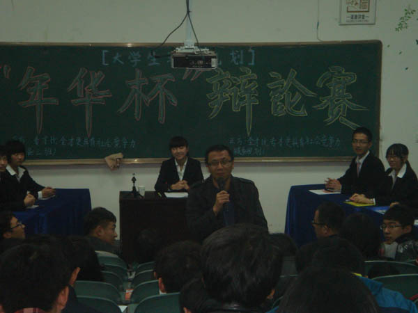 随后,由校辩论队和学院辩论队举行了一场精彩的表演赛。