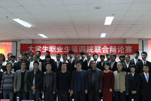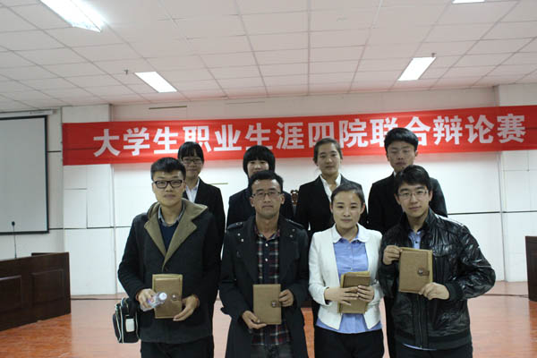 大学生职业生涯四院联合辩论赛在A区文科楼二楼模拟法庭火热开战,参加此次辩论赛的四个学院是天美传媒