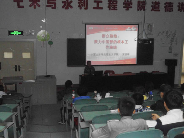 此次讲座主要内容有三个,首先党老师讲述开展党的群众路线教育实践活动的背景。具体情况分为四风问题,主要表现在理想信念动摇,宗旨意识淡薄,精神懈怠和以权谋私。二是纵观党的历史,走好群众路线。党老师通过对党的一大,七大和十八大的对比,总结出党的群众路线的方向和对社会主义市场经济体制探索的方向。三是面对现实,走好群众路线。党老师引用毛泽东晚年回忆和中国改革开放的事例,总结出两个历史方位:社会矛盾凸显期和中国的机遇期。