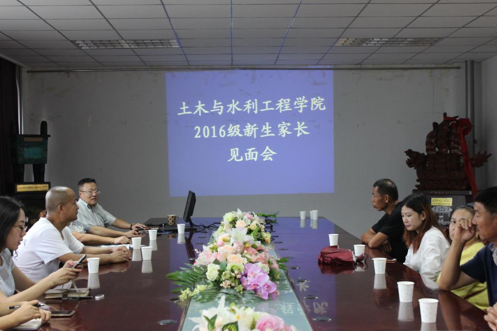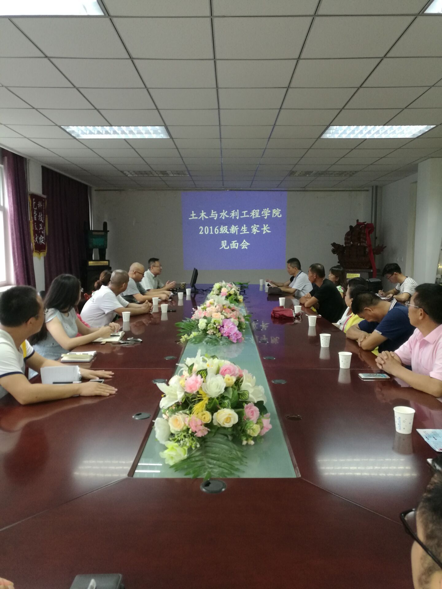 2016级新生家长见面会在工科楼四楼会议室举行。学院院长毛明杰老师、学办主任郭利老师、团委书记王娜老师、2016级学生辅导员陶雪梅老师以及2016级部分新生家长参加了此次见面会。