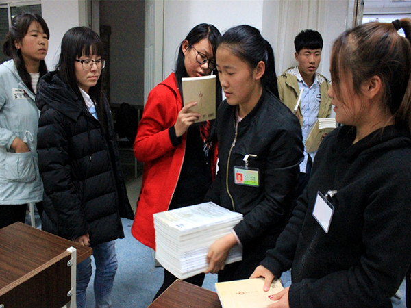 报告会后,郭文斌老师向同学们赠送图书760册,在场同学有序拿书退场。郭文斌老师的讲座让同学们经受了一次心灵的洗礼,同学们对自己的能量构建有了清晰的了解,对同学们心智和人格的发展有很大帮助。