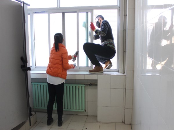 活动开始,负责人在一阶点名、分配任务,并详细说明了此次活动应该达到的标准和相关要求。活动在大家秩序井然的劳动中开始了,面对卫生间的脏乱不堪,他们没有选择逃避,而是用手中的工具把卫生打扫干净;面对墙壁上的点点污渍,他们没有唉声叹气,而是用手中的细砂纸卖力擦拭。渐渐的,卫生间变得干净整洁,两侧的墙壁变得洁白透亮。如果要问如何才能深入理解党的宗旨,如何才能贯彻实施不怕苦不怕累的精神?就是从这样一件件的小事中做起,就是从平常生活中的点点滴滴做起,相信发展党员们会将这样的精神传承下去并发扬光大。