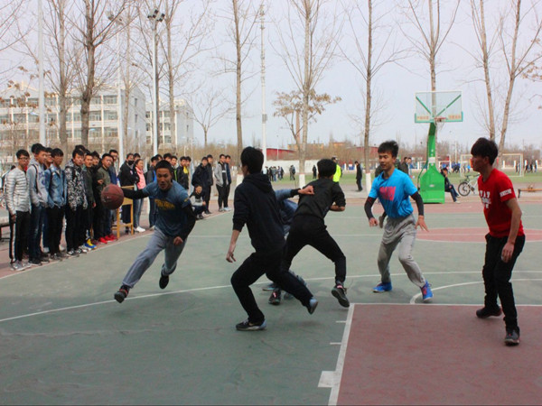 篮球场旁吐芽的桃花映衬着赛场上选手们炽热的心。比赛开始!似乎是渴望冠军心切,交通班一开始就以一个漂亮的三分球燃爆了场上气氛。与此同时,对冠军同样渴望的农水班也奋力拼搏,紧随其后。发球、运球、传球、断球、拼技投篮,场上队员拼红了眼,比赛一开始便进入白热化程度!如此精彩的博弈自然是引得场外观众们的拍掌喝彩,加油声一浪高过一浪。上半场比赛在交通班稍稍领先中结束�
