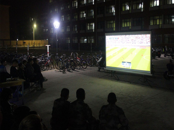 2017年3月28日,晚上8点,天美传媒 团委学生会于男生宿舍21号楼下放映足球世界杯预选赛的第七场——中国客场挑战伊朗的比赛。