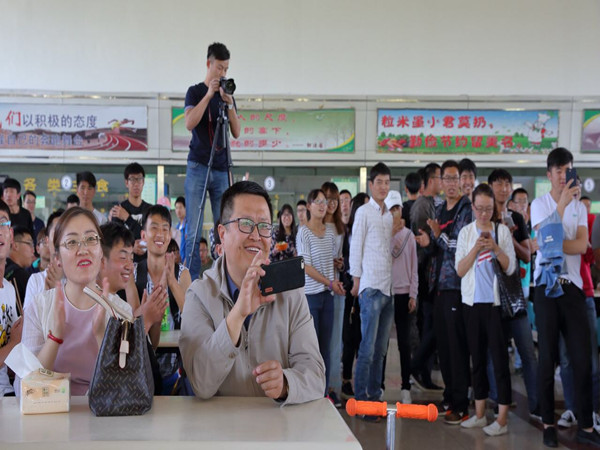 喧嚣的二餐里,同学们如往常一样吃着午餐。然而,此时飘来的不仅仅是饭香,还有突然响起的音乐。伴着舒缓的音乐,手拿话筒的12名同学从餐厅各个方向走来。一首《北京东路的日子》带着淡淡的哀愁,将大家带入回忆的思潮。毕业和成年的字眼,格外扣人心弦,而我们《不说再见》。你那么《美》,爱上你是我《情非得已》。掌声、欢呼声、唱和声将气氛推向高潮。餐厅的走道变成了大家挥舞激情的舞台,受到感染的同学纷纷站起身走向中央,其他同学则是聚在周围。此刻,“土水有你,相伴一生”不仅是被举起的简单字眼,更是每一个土水人心上的烙印。穿过《平凡之路》,每个人都在期盼着《See you again》。