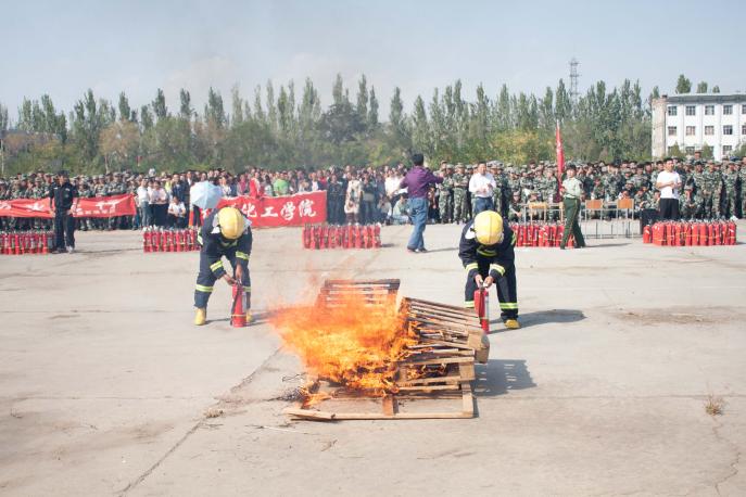 保卫处副处长张启明用简短的语言简明扼要地概括了校园存在的安全问题,并对其提出了相对应的改进方法。同时,也对学生在宿舍的安全方面提出了几点具体要求。大会最后,新生在消防人员的细心指导下,详细了解了消防器材的名称及功能,并进行了灭火体验。