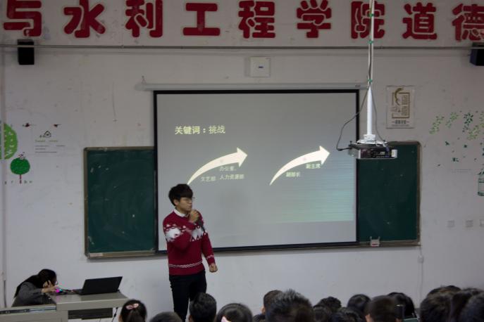 团委学生会在知行楼三阶隆重举行了2017学年秋季学期团委学生会述职测评报告会。学院党委副书记柳松洁老师、学院团委书记蒋宇欢老师、学生工作办公室陶雪梅老师、何进宇老师、马小凤老师出席了本次会议,团委学生会全体成员参加了本次会议。此次会议由7名主席团成员以及来自14个部门的代表进行了述职报告,对于本学期的学生工作进行总结、反思,通过述职提升学生干部的综合素质。