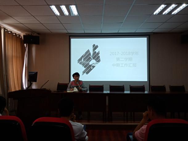 首先,各部门的部长和分管主席团成员做团学工作中期汇报。工作汇报总结了两个月以来工作的落实情况和正在进行的工作的进展情况,指出了工作中的缺点不足,并针对这些问题提出了解决办法。各个部门还对本学期下阶段的工作做了计划和安排,提出了下一步的工作目标。