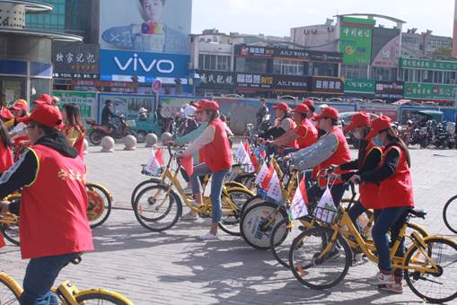 的志愿者们分成两组,分别前往同心市场和燕宝花园,在人口集中,人流量大的片区开展沿街宣传。恰逢今天是ofo小黄车入驻银川一周年,为了纪念这个特别的日子,让这次活动更加顺利地进行,西夏区团委特意给志愿者准备了100辆小黄车。到达目的地后,志愿者们给市民和摊贩分发印好的宣传品和宣传彩页,有不少市民,从大人到小孩,虽然对创城不是很了解,但还是表现出了浓厚的兴趣,志愿者们就食品安全以及创城进行了大致的讲解。宣传品和彩页全部被分发完,市民们也对创城有了一定的了解,银川市在成为“食安城市”的道路上又前进了一步。“民以食为天,食以安为先”。只有人人关心食品安全,家家才能享受幸福的生活。
