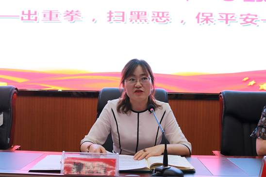 会议伊始,柳松洁通过某些农村村支书等村干部形成保护伞,真正穷苦的人得不到合法利益,来强调扫黑除恶的重要性。她向同学们描述了国内外严峻的形势,进一步明确国家开展扫黑除恶专项斗争工作的决心和必要性。她讲到,从拒绝校园贷,阻止校园暴力的发生到开展专项斗争,赢得党心民心再到扫黑除恶,与同学们关系密切。大力宣传扫黑除恶,从宿舍开始进行排查管制刀具,排除班级内部欺凌情况。最后,柳松洁强调借助此次扫黑除恶的机会,开展工作自查。