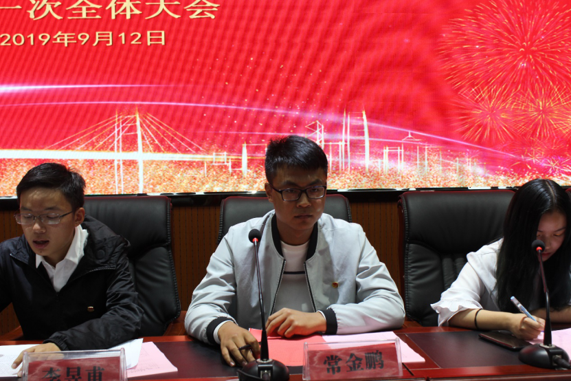 第十二届第一任团委学生会、第二届易班学生工作站第一次全体大会顺利召开。学院学生组织指导老师蒋宇欢参加了本次大会。学院团委副书记李昱甫、张绍虎,学生会主席常金鹏,副主席陈俊、丁轶,易班工作站站长马宁,及学院全体学生组织成员参加了本次会议。本次会议由学生会副主席单佳洁主持。