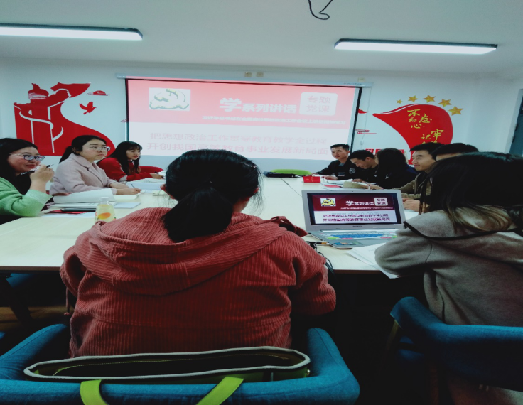 随后,由高海燕、董亚萍同志组织学习具体内容,全体党员进行研讨,主要学习形式为PPT讲解和党员分组讨论。教育强则国家强,人才兴则民族兴。“要坚持把立德树人作为中心环节,把思想政治工作贯穿教育教学全过程,实现全程育人、全方位育人”。高海燕同志表示,习近平总书记的重要讲话高屋建瓴,进一步回答了我们要办什么样的大学?怎样办大学?培养什么样的人才?怎样培养人才?为谁培养人才的问题?思想政治工作是一切工作的生命线,关系到党和国家的战略工程、筑魂工程。董亚萍同志强调思政工作牵涉面非常广,要求我们要有一个非常宽广的视野,这对我们思想政治工作提出了更高的要求�