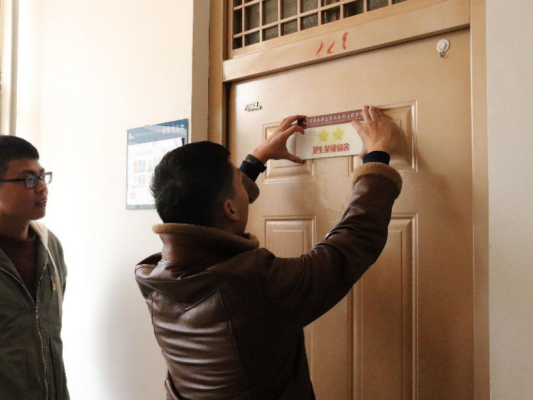在挂牌期间,学生会副主席丁轶说,此次挂牌仪式是对大家取得优秀宿舍的肯定与鼓舞,希望大家能够继续保持,并争取更高的星级,最后合影留念。