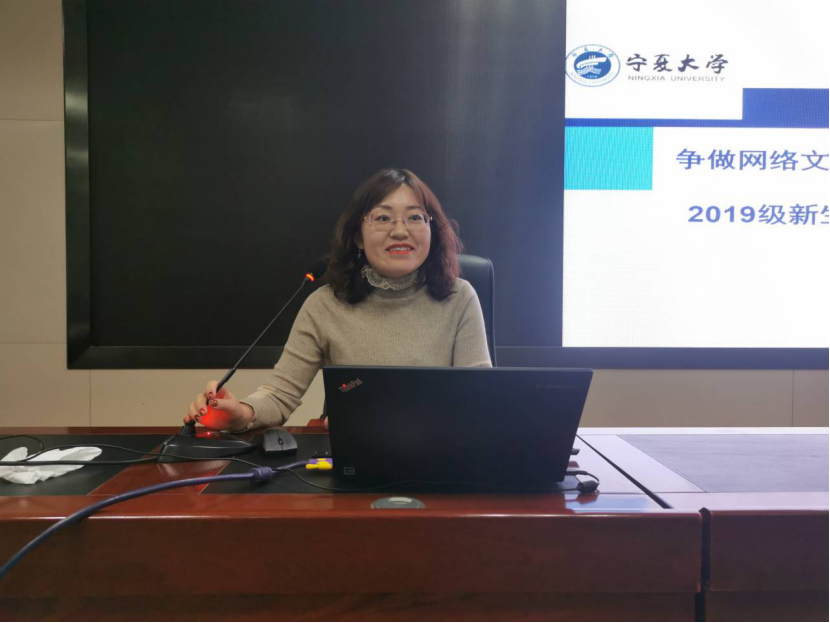 柳松洁副书记首先以“网络安全”为题,提出大学生在校园中应该谨防网络诈骗以及网贷,并向2019级新生普及向大学生网贷本身便是违法的行为,希望2019级学生不要落入陷阱。