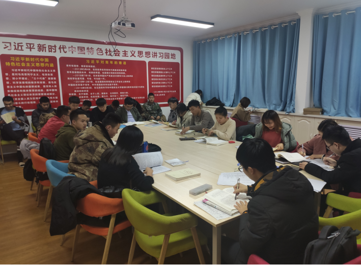2019�11�20�,交管本科党支部在党员活动室举行“不忘初心、牢记使命”主题教育补学会议,补学成员刘辉,王常凌、吴婷参加会议�