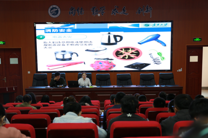 于知行楼三楼阶梯教室举行研究生网络文明守纪与安全教育宣讲,党委副书记柳松洁主持此次活动,教授徐浩出席活动。