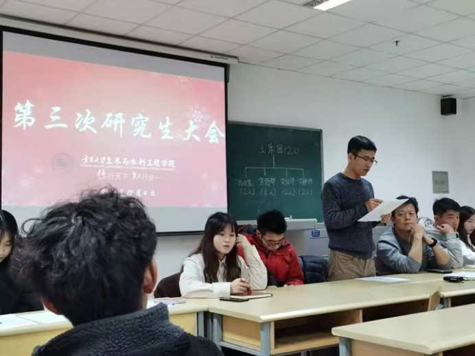 第三次全体研究生大会于二教308准时召开。本次会议由徐浩、柴明堂老师主持,全体研究生参加了本次研究生大会。