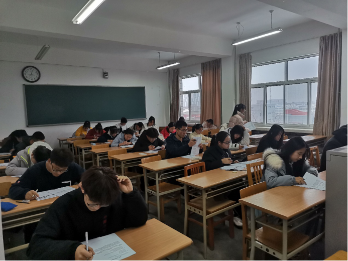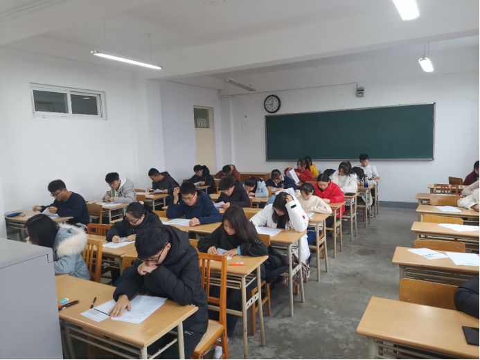 考试当天备考同学积极参与,本次考试完全模拟四六级英语考试的正规流程,所用试题符合四六级考纲的最新要求。考试开始前,监考人员提前到各考场调试听力设备,以确保播放听力环节万无一失。考试开始时,由各个考场监考人员发放试卷与答题卡,严格按照标准时间播放听力,收发答题卡,并维持考场秩序,营造出一个紧张的模拟环境,考生们也认真细心地作答每一道题目。考试结束后,监考人员收取答题卡,考生有序离开各自考场。