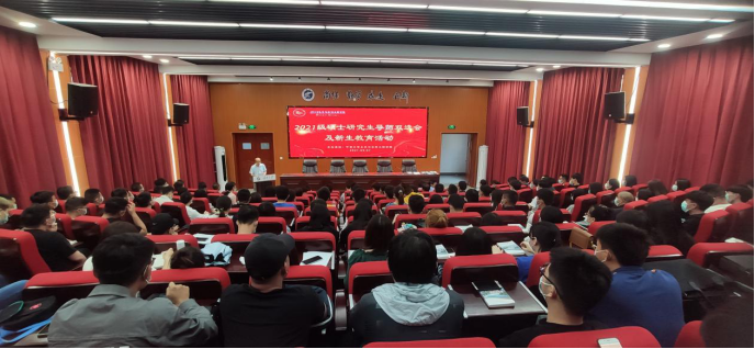 在知行楼三阶报告厅召开2021级研究生新生导师双选会与新生入学教育活动,2021级研究生全体新生、学院领导、部分研究生导师、学工办及研办老师参加会议。