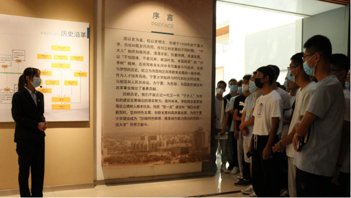 贺兰山校区科技楼一楼校史馆开展。2021级全体新生参加了此次活动。