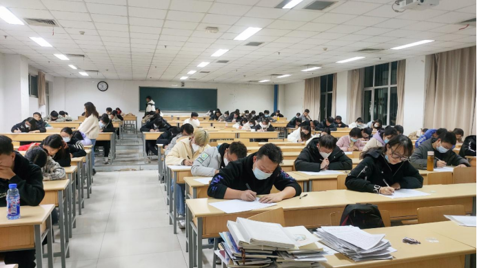 本次考试由土木本科党支部书记何涛老师、建规本科党支部书记蒋宇欢老师以及党建办公室小组成员监考。考试中,监考员严谨负责,认真监考;考生们也奋笔疾书,运用在培训中学到的知识,认真思索,仔细答题,展现了良好的素质和井然的秩序。