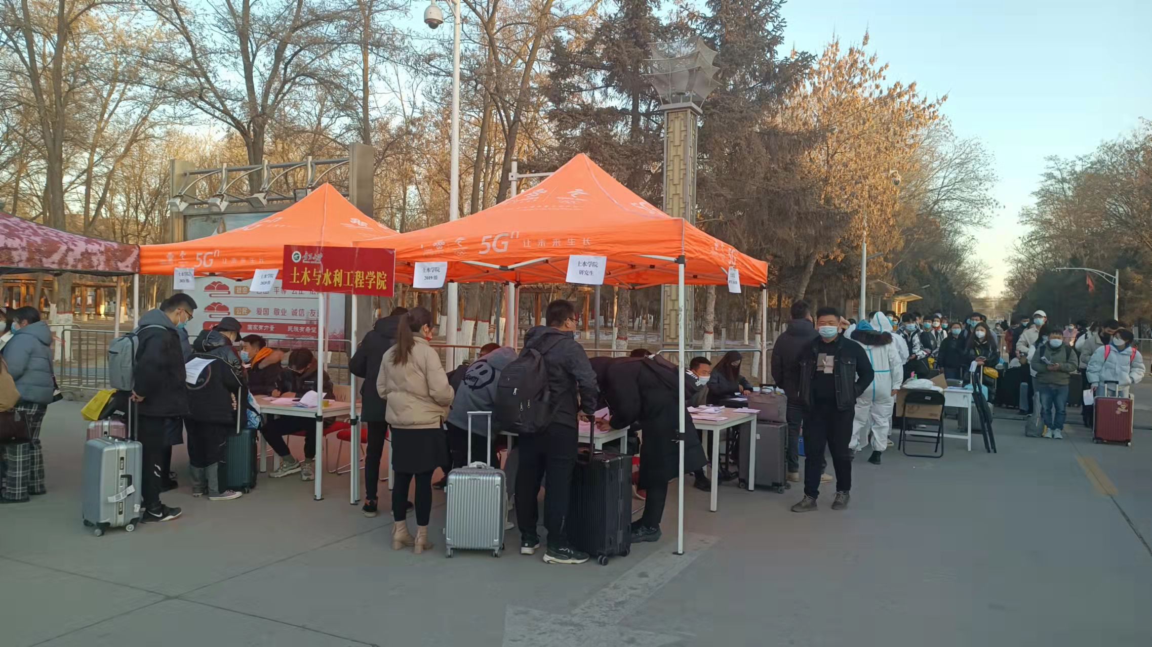 在文萃校区南门口设置接待点,通过老师和志愿者同学们的精心准备、细致安排,助力土水学子顺利返校。